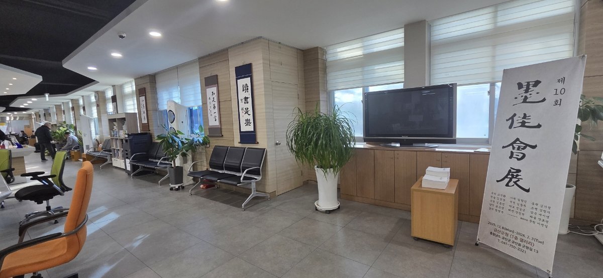 [금요저널] 금산군청 민원실 갤러리에서 진행 중인 제10회 묵가회전이 겨울철 군청을 찾는 주민들에게 잔잔한 문화적 울림을 전하고 있다.