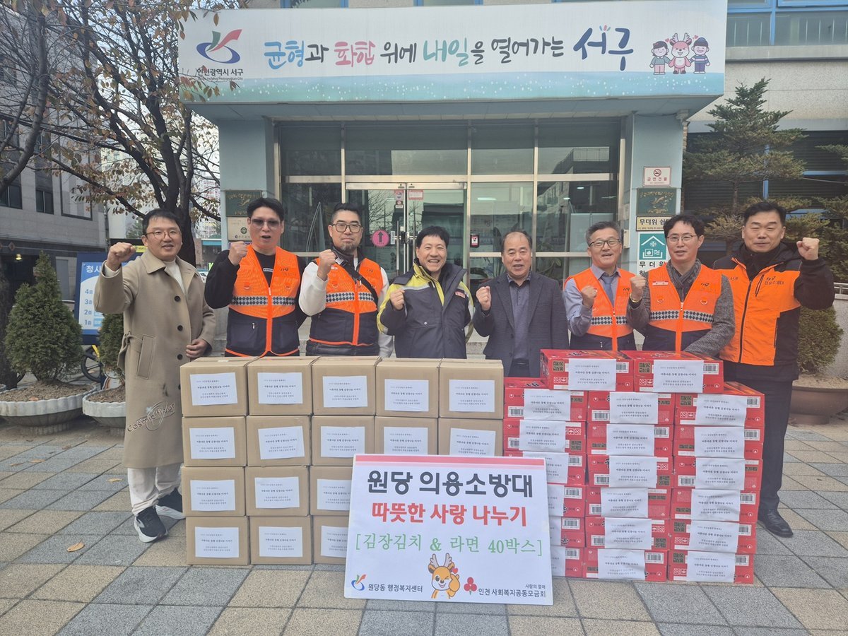 [금요저널] 인천 서구 원당동 행정복지센터는 지난 10일 원당 의용소방대로부터 대원들의 정성이 담긴 김장김치와 라면 각 20박스를 전달 받았다.