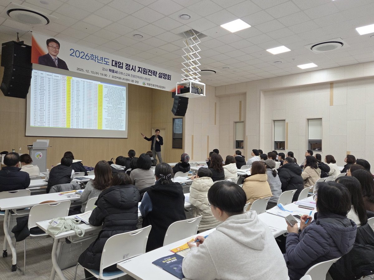 설명회에서는 △2026학년도 수능결과 분석 △정시 선발 규모 및 특징 △대학별 정시 변화 포인트 및 지원전략 등 대입 지원에 대한 중요정보를 참석자들에게 제시했다.