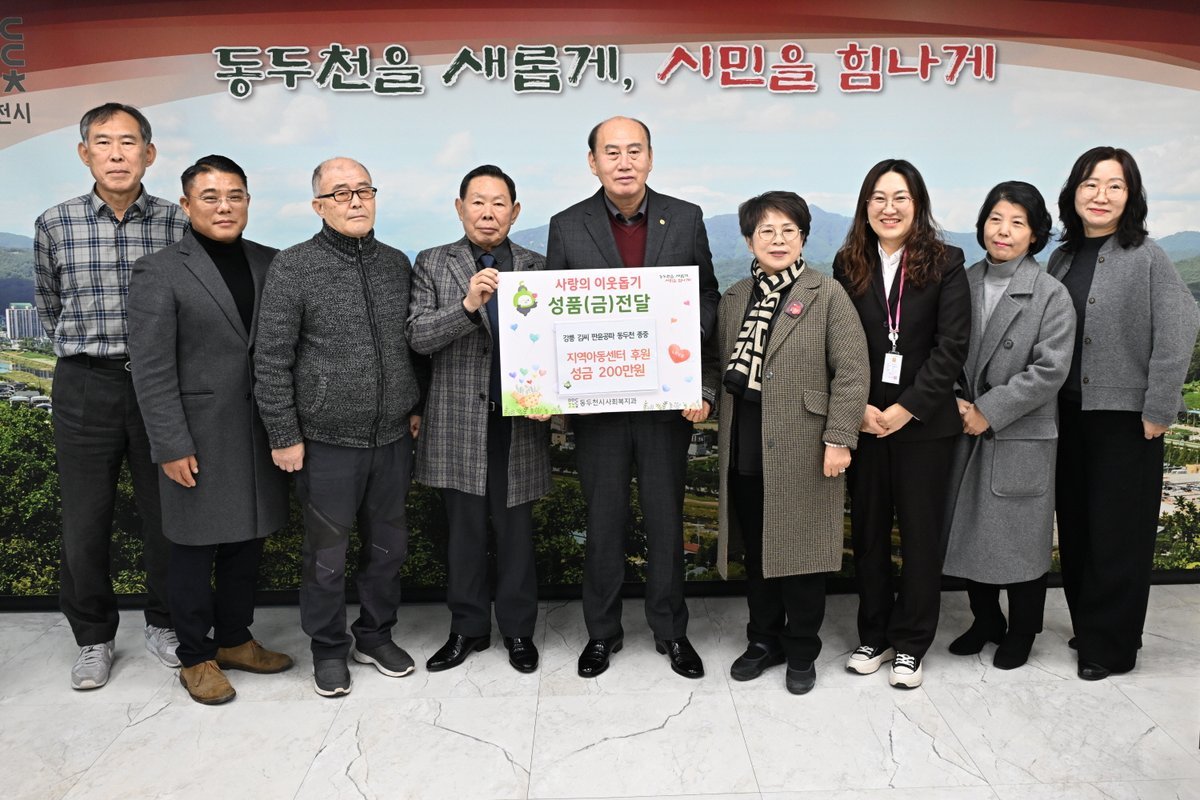 박형덕 동두천시장은 “우리 아이들을 위한 따뜻한 관심과 정성을 보내주신 강릉김씨 판윤공파 동두천 종중에 깊이 감사드린다”라며 “기탁해 주신 성금은 아이들이 즐겁고 의미 있는 겨울방학을 보낼 수 있도록 소중히 사용하겠다”라고 밝혔다.