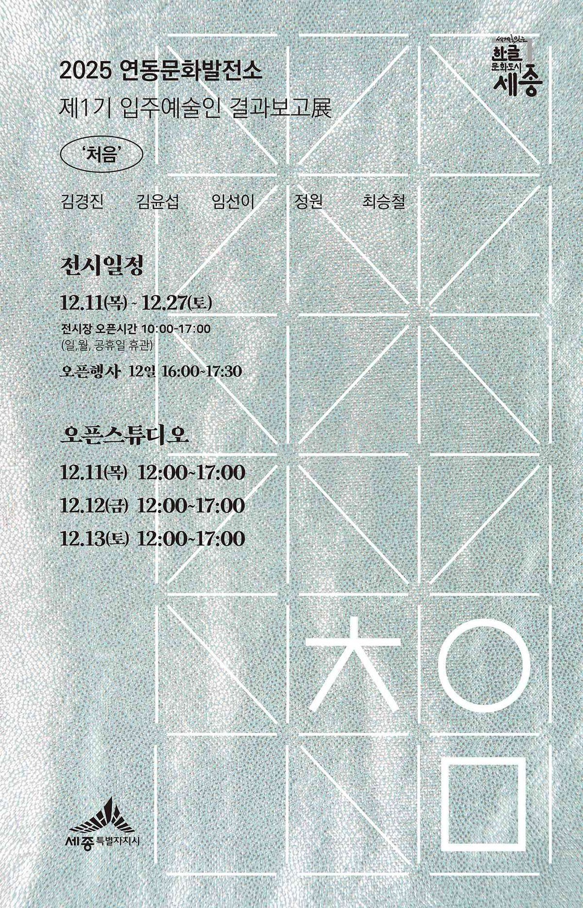 [금요저널] 세종특별자치시가 오는 27일까지 연동문화발전소에서 제1기 입주예술인 결과보고전 ‘처음’을 선보인다.