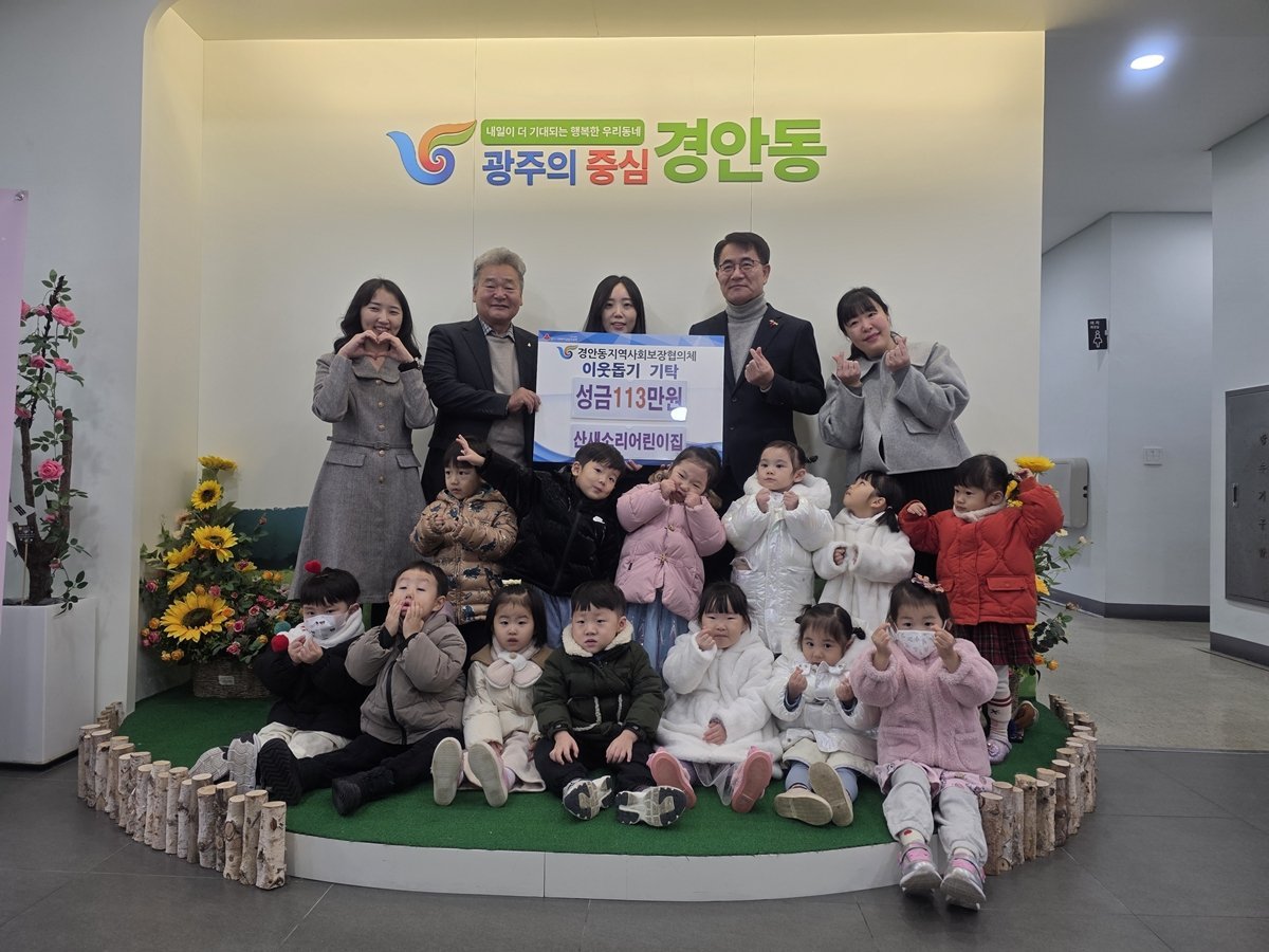 이에 대해 한상흠·이정한 경안동 지보체 공동위원장은 “어린 원아들이 직접 방문해 성금을 전달해 준 것에 깊은 감동을 받았다”며 “여러분의 따뜻한 마음이 어려운 이웃들에게 큰 힘이 될 것이며 ‘따뜻하고 행복한 경안동’을 만들어가는 데 소중히 사용하겠다”고 감사의 뜻을 밝혔다.