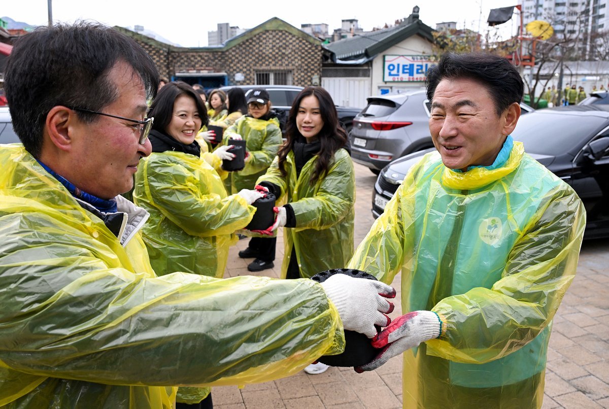 이날 오전 신흥마을에서 열린 행사에는 추운 날씨에도 불구하고 김동근 시장을 비롯해 봉사자 50여 명이 참여했다.