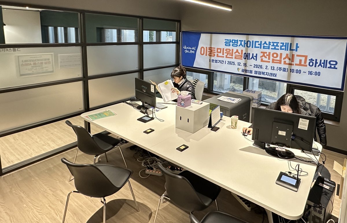 [금요저널] 광명시 광명1동 행정복지센터는 대규모 입주가 진행 중인 ‘광명자이더샵포레나’입주민들의 전입 초기 불편을 최소화하고 생활권 내에서 보다 편리하게 행정서비스를 이용할 수 있도록 오는 2026년 2월 13일까지 이동민원실을 운영한다.