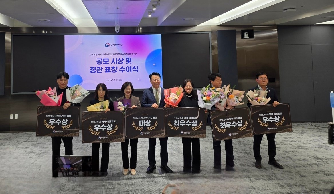 [금요저널] 세종특별자치시가 지난 15일 행정안전부 주관 ‘지역-기업 협업 우수사례 공모전’에서 최우수상을 수상해 1억 5,000만 원의 특별교부세를 받는다고 밝혔다.