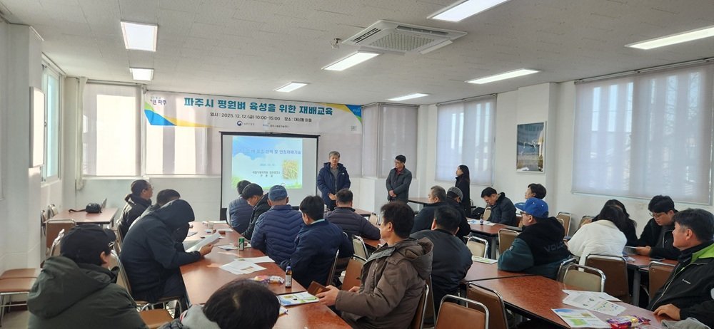 [금요저널] 파주시는 지난 12일, 대성동 평원벼 재배 농업인을 대상으로 ‘평화미소 육성을 위한 재배교육’을 추진했다고 말했다.