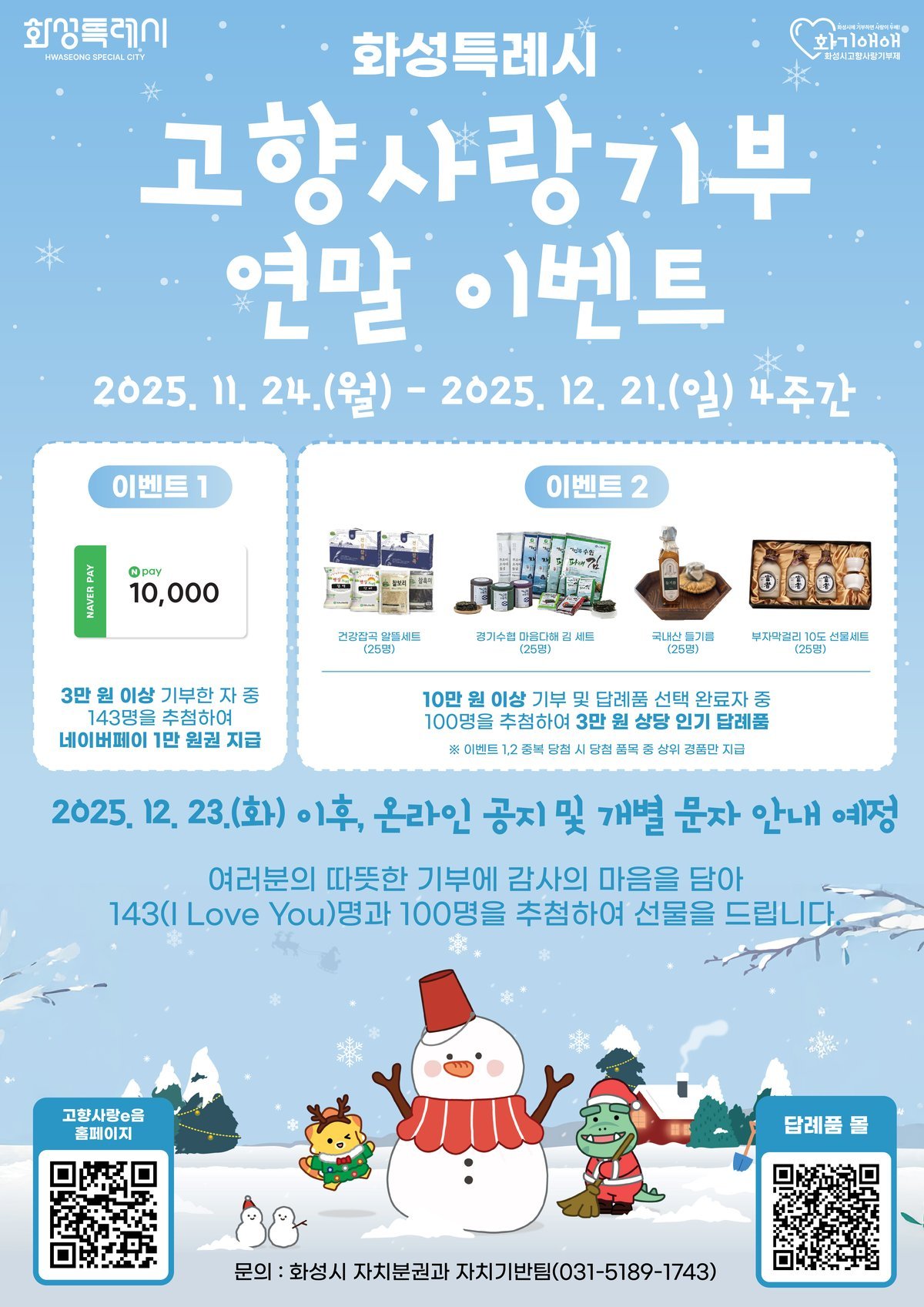 [금요저널] 연말정산 시즌을 맞아 화성특례시 고향사랑기부제가 기부자들의 이목을 끌고 있다.