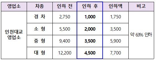 [금요저널] 12월 18일 00시부터 인천대교 통행료가 소형 기준 5,500원에서 2,000원으로 약 63% 인하될 예정이다.