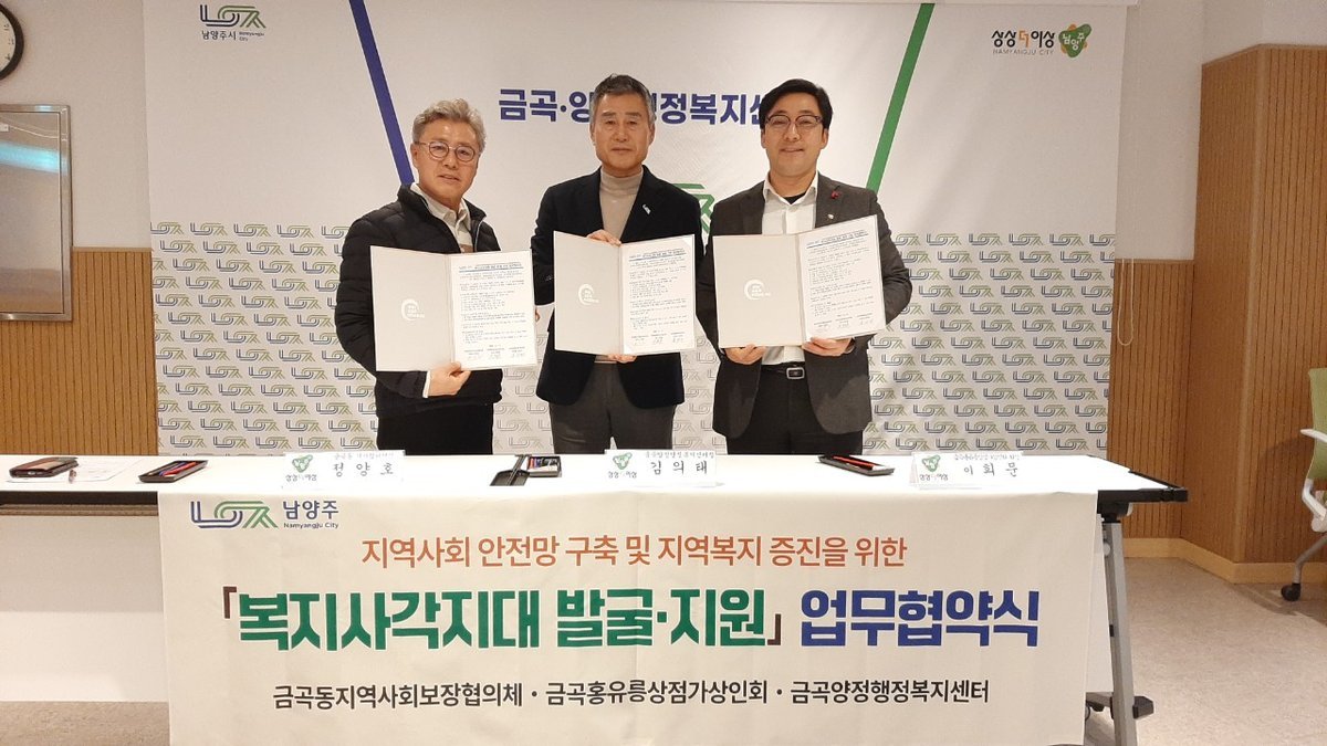 [금요저널] 남양주시는 15일 금곡양정행정복지센터가 금곡동 지역사회보장협의체 및 금곡홍유릉상점가상인회와 함께 복지사각지대 발굴 및 취약계층 지원 강화를 위한 업무협약을 체결했다고 밝혔다.