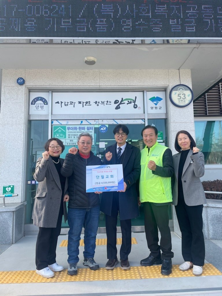 [금요저널] 양평군 단월면은 지난 12일 단월교회 성도들이 따뜻한 마음을 모아 마련한 성금 450만원을 기탁 받았다고 밝혔다.