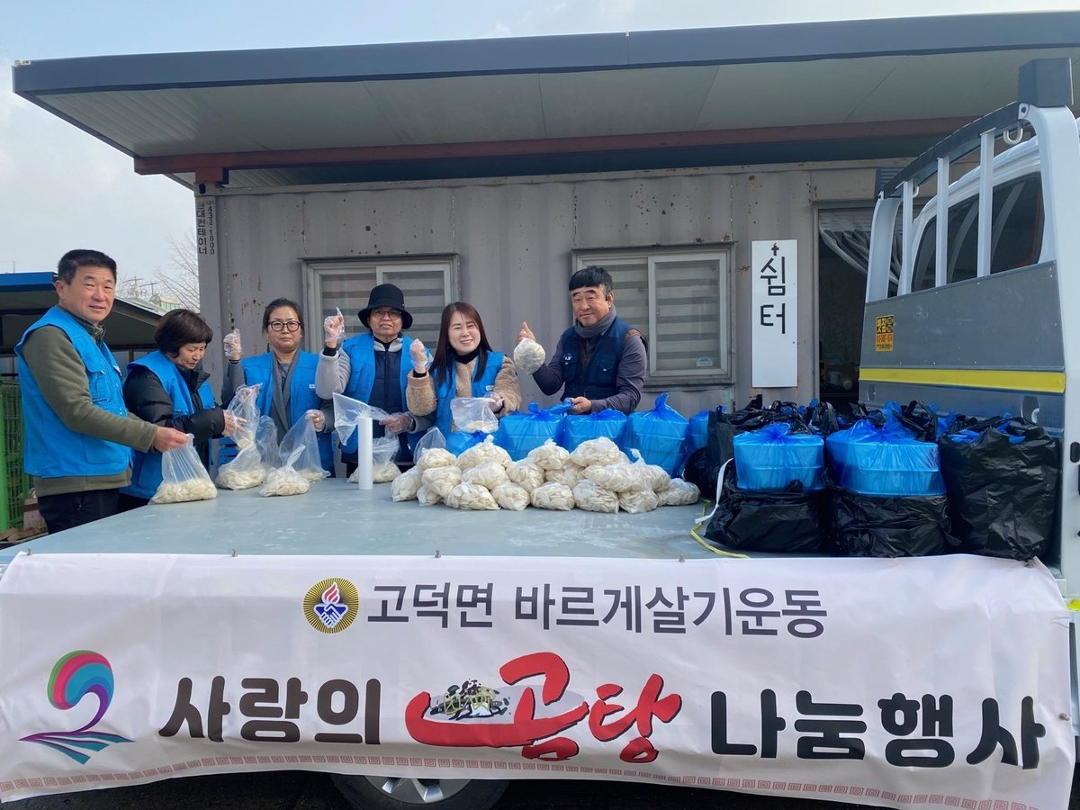 [금요저널] 평택시 고덕면 바르게살기위원회는 지난 12일 저소득층과 홀몸노인 등 취약계층 100세대를 대상으로 한겨울 추위를 이겨낼 수 있도록 따뜻한 한 끼를 전하는 ‘사랑의 곰탕 나눔 행사’를 실시했다.