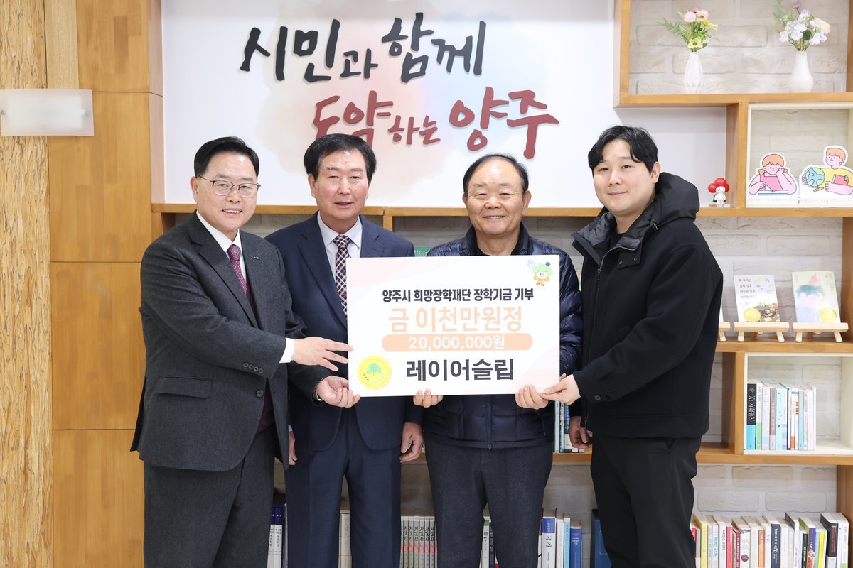 레이어슬립, 양주시희망장학재단에 2천만 원 장학기금 기탁 (양주시 제공)