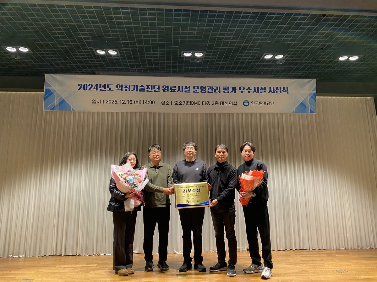 대야 물말끔터는 전처리시설의 각 단위 공정별 악취 발생원에 국소포집설비를 설치하고, 공간 내 악취를 효과적으로 제거하기 위한 공간포집설비를 운영하는 등 악취관리 체계를 강화해 높은 평가를 받았다.