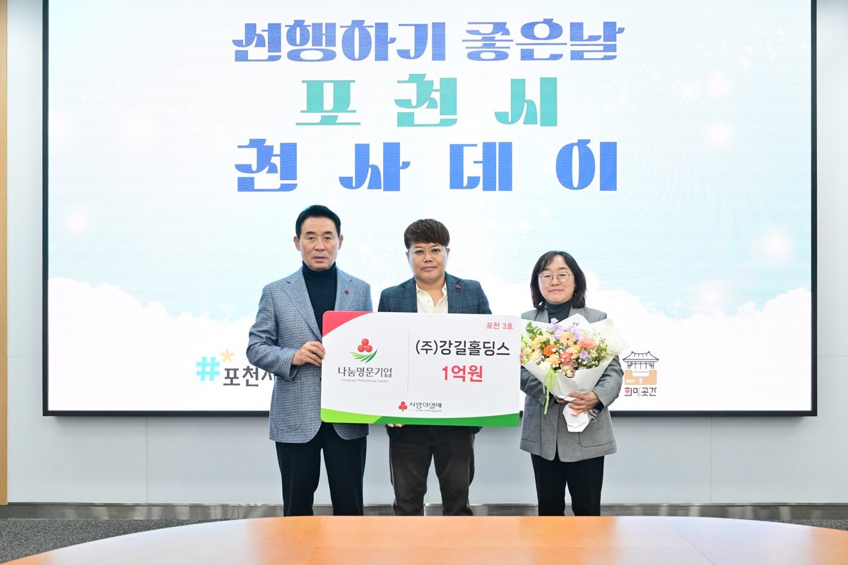 포천시 관계자는 “오늘 천사데이를 통해 포천시 제3호 나눔명문기업으로 선정된 ㈜강길홀딩스 대표자께 진심으로 축하의 말씀을 드린다”며 “이웃에 대한 남다른 애정으로 꾸준히 나눔을 실천해 주신 후원자 여러분께 깊이 감사드린다”고 말했다.