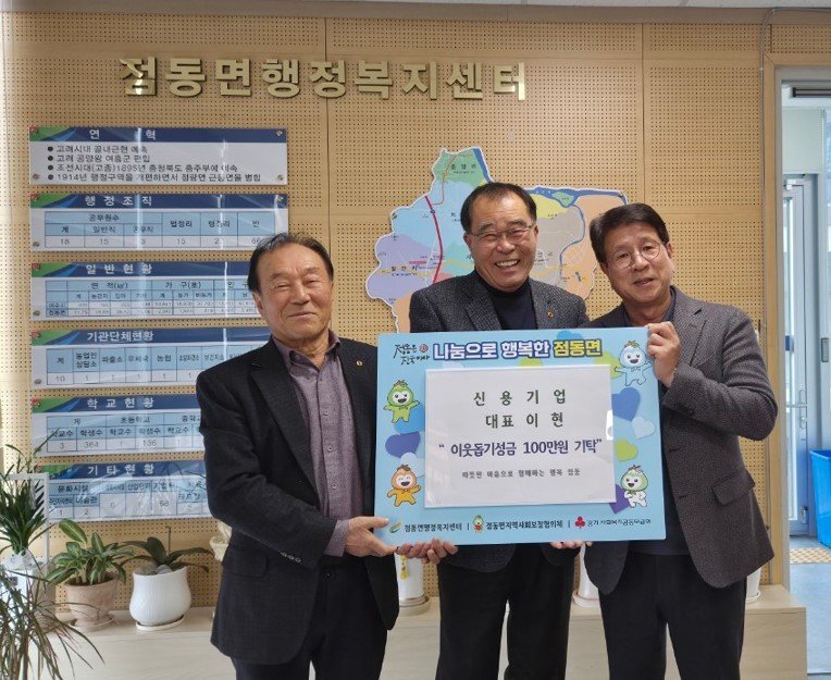 신광식 점동면장은 “연말연시에 귀한 발걸음으로 따뜻한 마음을 전해주신 이현 대표님께 깊이 감사드린다”며 “기탁해 주신 성금은 도움이 꼭 필요한 이웃들에게 정성껏 전달하겠다”고 전했다.