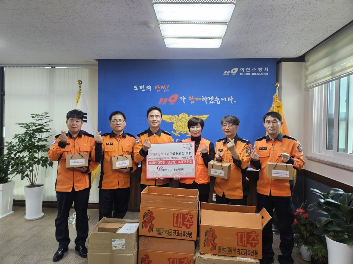 이미선 이천시자원봉사센터장은 “시민의 안전을 위해 헌신하는 소방공무원들께 감사의 마음을 전하고자 이번 나눔을 준비했다”라며 “자원봉사자들의 정성과 전문 레시피가 담긴 수제청이 겨울철 소방공무원들에게 작은 위로와 응원이 되기를 바란다”라고 밝혔다.
