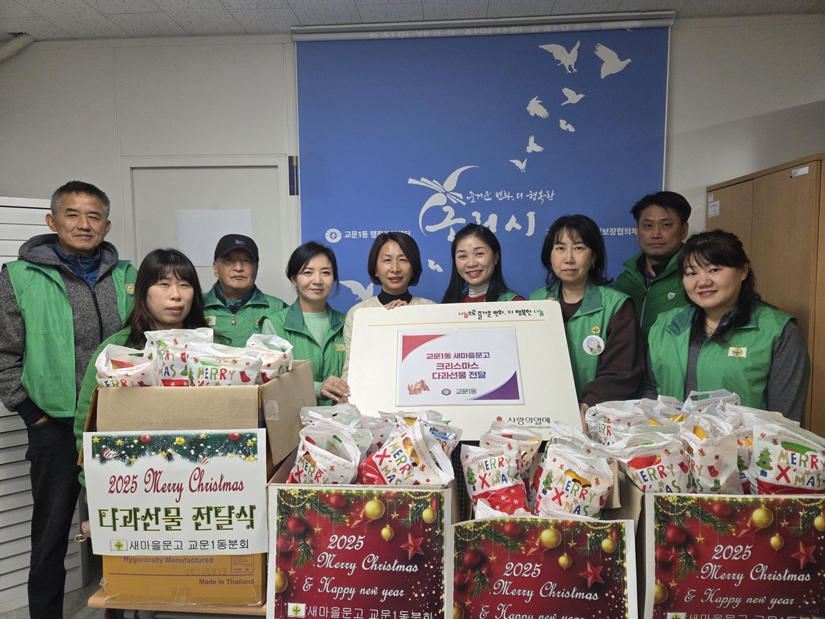 이번 행사는 연말과 크리스마스를 맞아 지역아동센터를 이용하는 아이들이 따뜻하고 즐겁게 지낼 수 있도록 마련됐으며, 교문1동 새마을문고 회원들이 정성껏 준비한 다과 선물 세트를 각 센터에 전달했다.