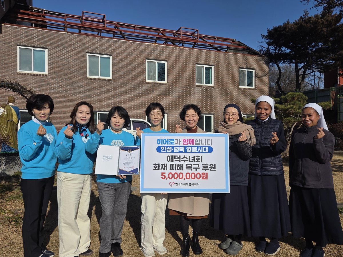 후원금 전달식은 화재 피해가 발생한 미리내성요셉애덕수녀회에서 진행되었으며, 안성·평택 영웅시대 회원들은 갑작스러운 화재로 어려움을 겪고 있는 이웃들의 일상 회복을 돕고자 십시일반 정성을 모았다.