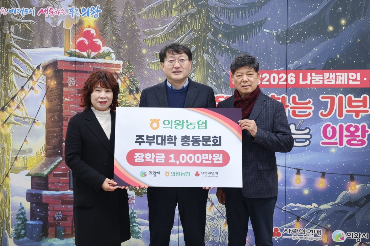 [금요저널] 의왕시는 12월 18일 ‘의왕농협주부대학 총동문회가 지역 인재 육성을 위해 장학금 1000만원을 기부했다고 밝혔다.
