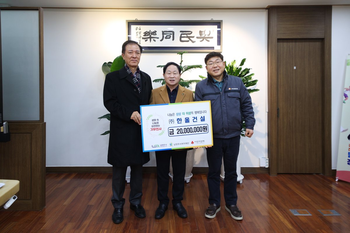 한울건설, 지역 취약계층 아동 위해 남양주시에 2천만 원 기탁…지역과 상생하는 기업 문화 선도 (남양주시 제공)