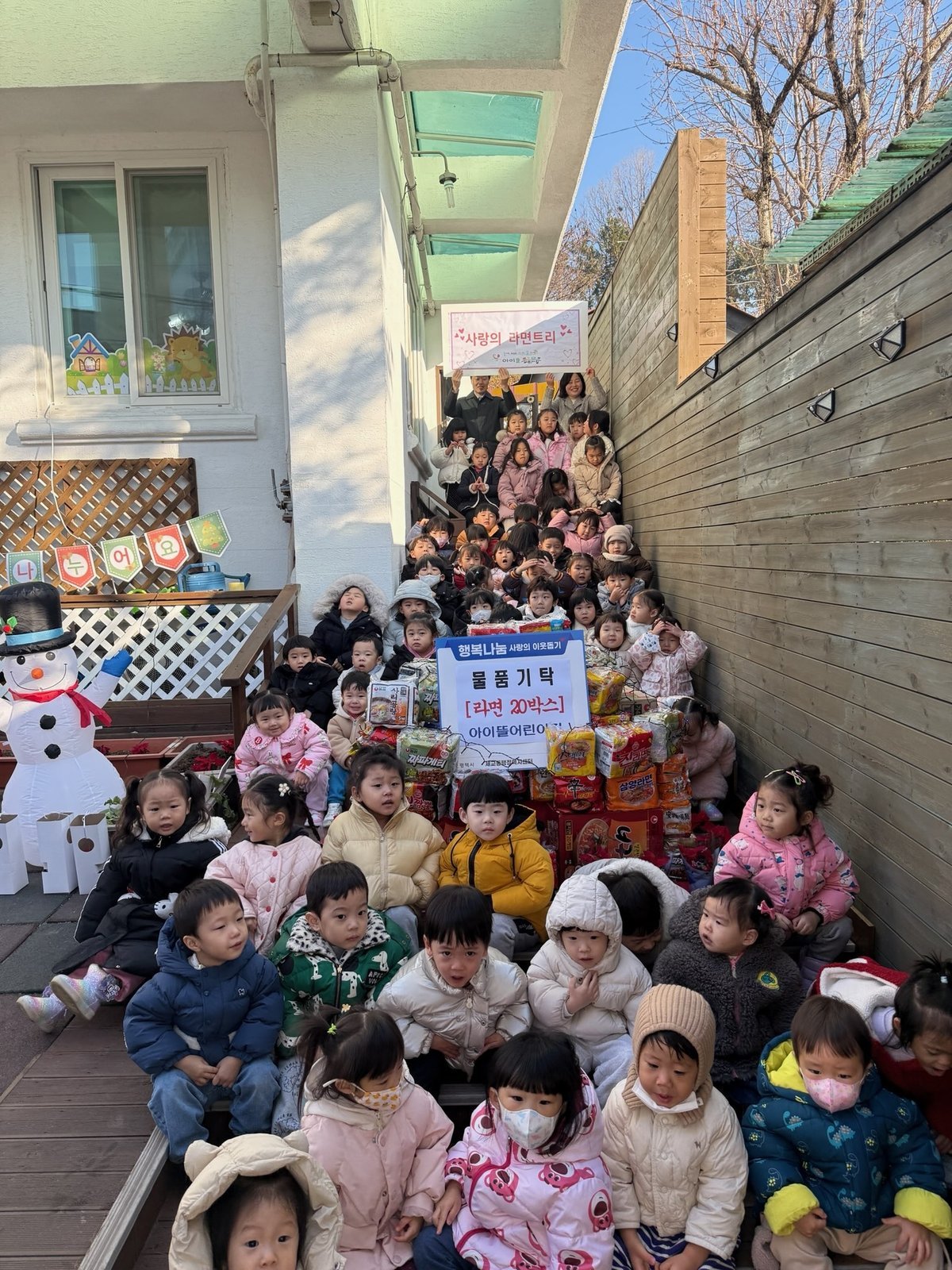 이번 기부는 어린이집 내 「라면 나눔 트리 만들기」 행사를 통해 마련된 물품으로, 원생들에게 어려운 이웃에게 따뜻한 마을을 나누는 선행을 실천하는 경험의 기회를 제공했다.