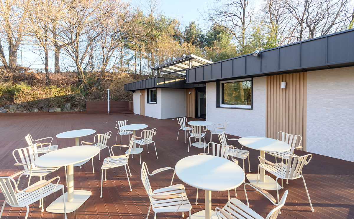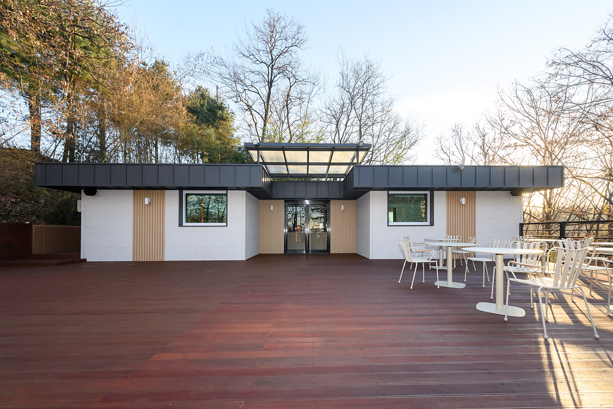 내부공간 전반은 원목을 중심으로 차분하게 연출해 자연과 조화를 이루는 아늑한 쉼터로 완성했으며, 실내외를 잇는 구조를 통해 계절과 날씨 변화에 따른 자연경관을 감상할 수 있도록 했다.