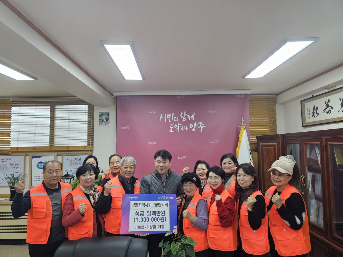 [금요저널] 남면지역사회보장협의체가 지난 19일, 연말을 맞아 지역 내 어려운 이웃을 돕기 위한 이웃돕기 성금 100만 원을 기부하며 따뜻한 나눔을 실천했다.