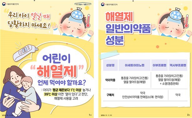 [금요저널] 식품의약품안전처 소속 식품의약품안전평가원은 겨울철에는 고열이 동반된 감기 및 독감 환자의 해열제 사용이 늘어남에 따라, 소아 해열제의 올바른 사용방법을 안내한다고 밝혔다.