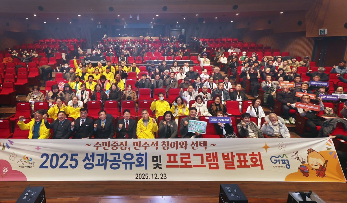 [금요저널] 가평군은 23일 가평문화예술회관에서 주민자치회 위원과 주민들이 참석한 가운데 ‘2025년 주민자치 성과보고회’를 성황리에 개최했다고 24일 밝혔다.
