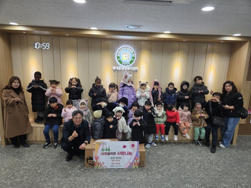 임은승 송내동장은 “추운 날씨에도 방문해 준 아이들의 따뜻한 마음과 함께 전달받은 성금과 물품을 도움이 필요한 이웃들에게 소중히 전달하겠다”라며 “매년 나눔을 실천해 주시는 꿈사랑 어린이집에 깊이 감사드린다”라고 말했다.