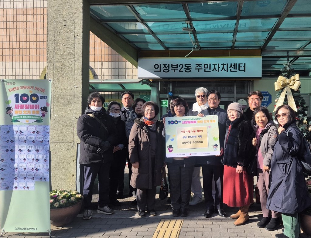[금요저널] 의정부시 의정부2동주민센터는 12월 22일 의정부2동 주민자치회가 ‘100일간 사랑릴레이 배턴 잇기’에 동참해 취약계층을 위한 성금 100만 원을 전달했다고 밝혔다.