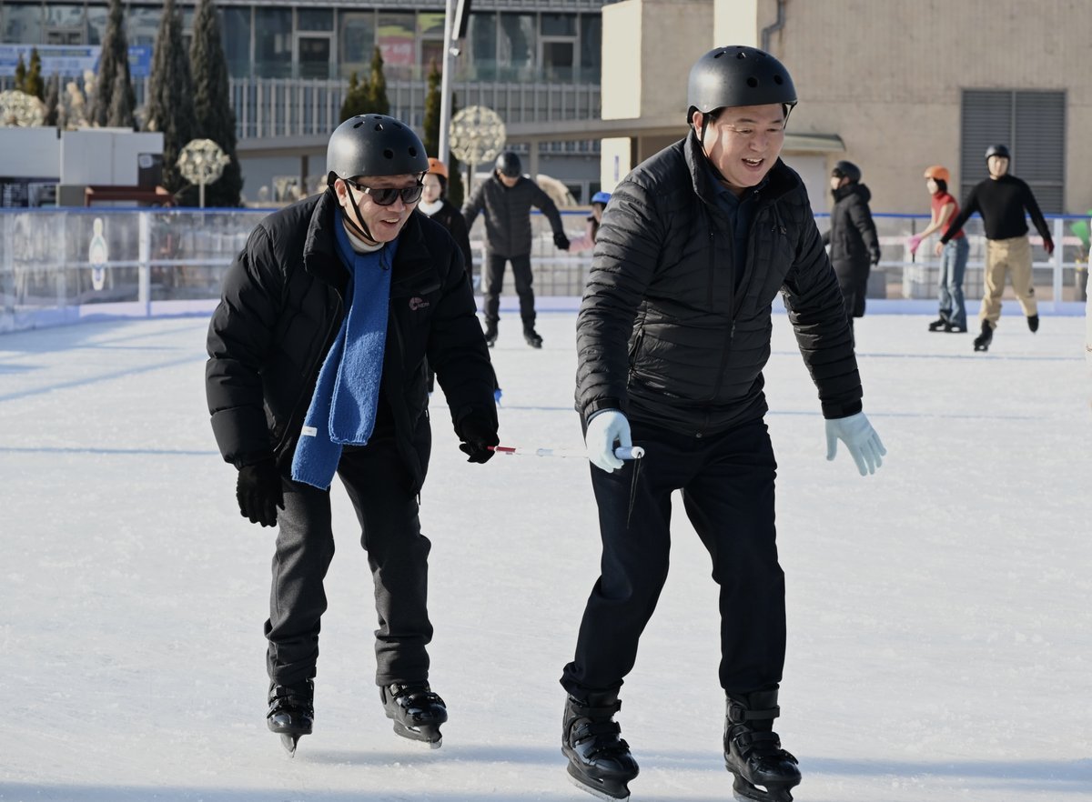 이날 임 시장과 문 지회장은 함께 거북섬 아이스링크에서 스케이트를 즐겼다.