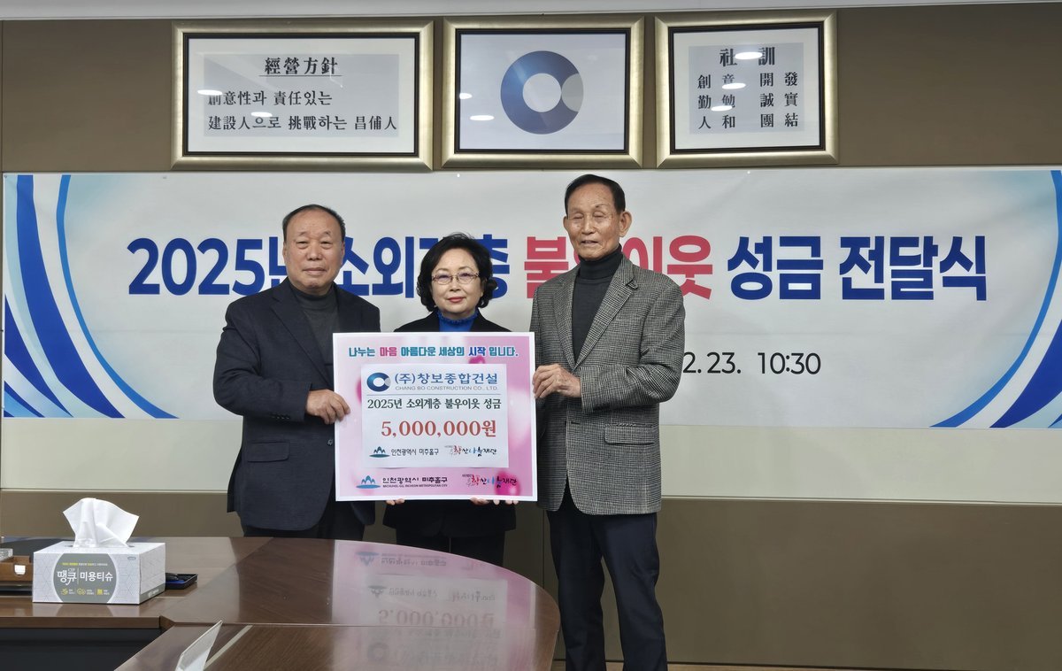 ㈜창보종합건설, 미추홀구 소외계층 위해 성금 500만 원 기부 (미추홀구 제공)