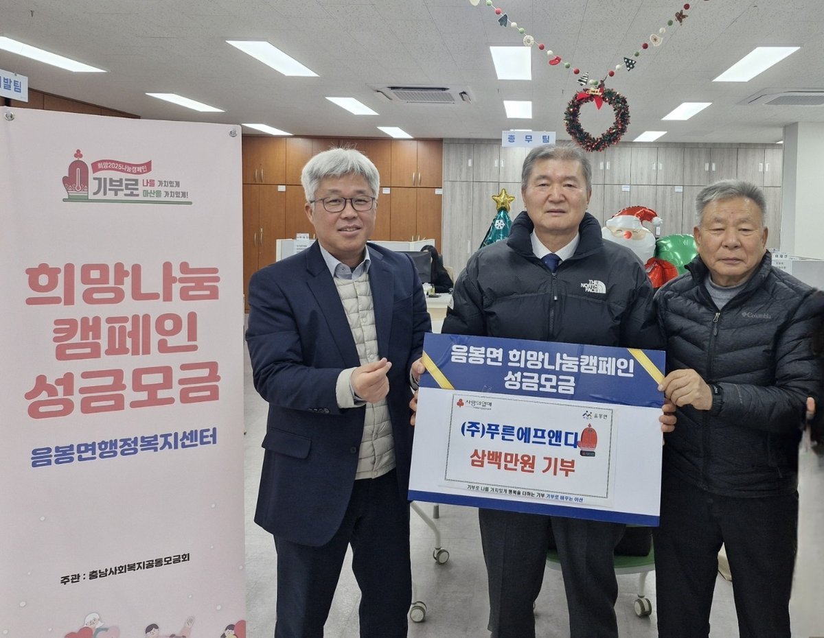 아산시 음봉면, ㈜푸른에프앤디 ‘희망2026나눔캠페인’300만 원 기부 (아산시 제공)