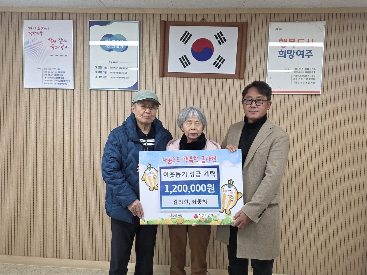 [금요저널] 금사면 생활개선회 최종희 회장이 배우자와 함께 지난 24일 여주시 금사면행정복지센터를 방문하여 이웃돕기 성금 120만원을 기탁하였다.