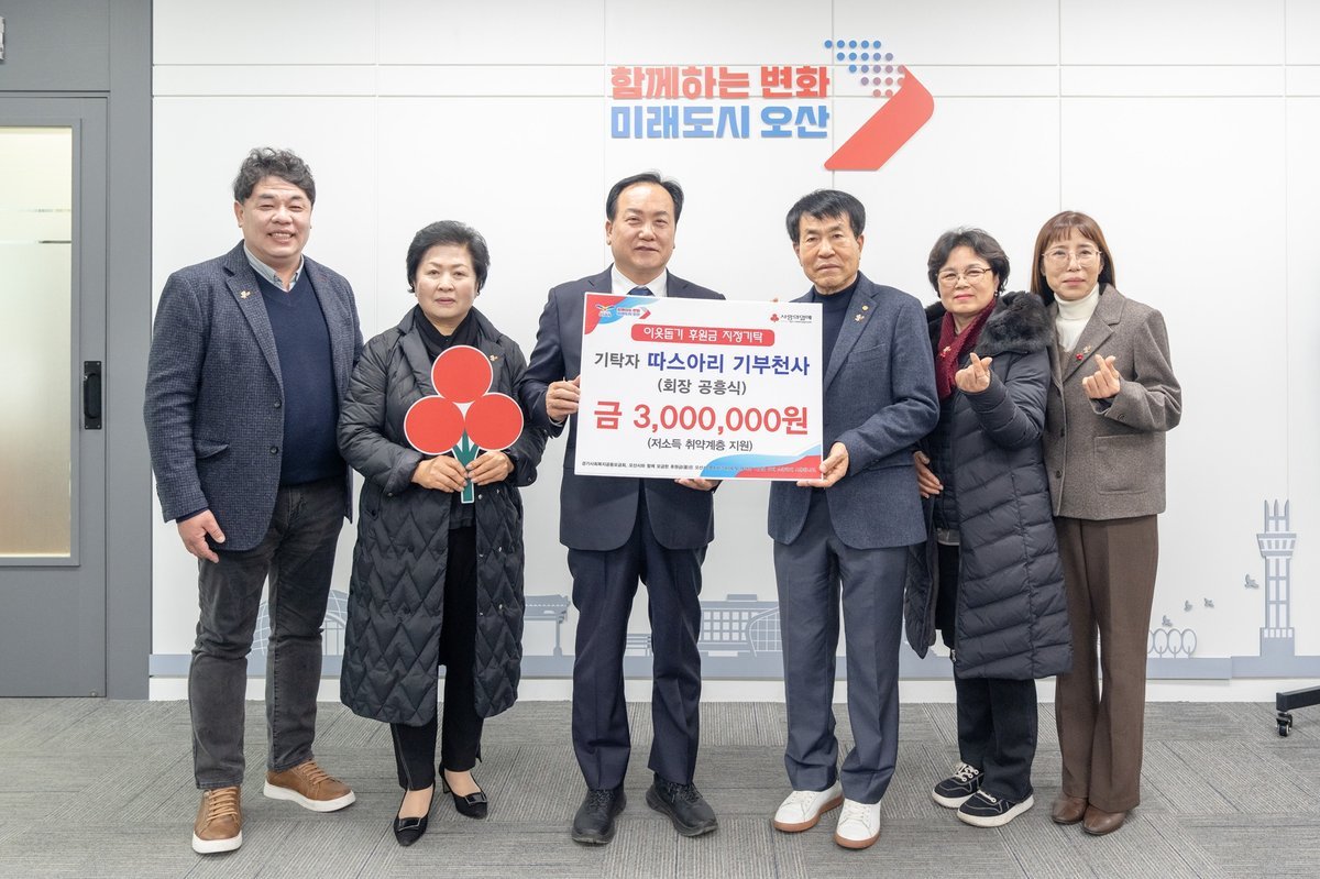 [금요저널] 오산시는 지난 24일 따스아리 기부천사로부터 저소득 취약계층 지원을 위한 후원금 300만 원을 기탁받았다고 밝혔다.