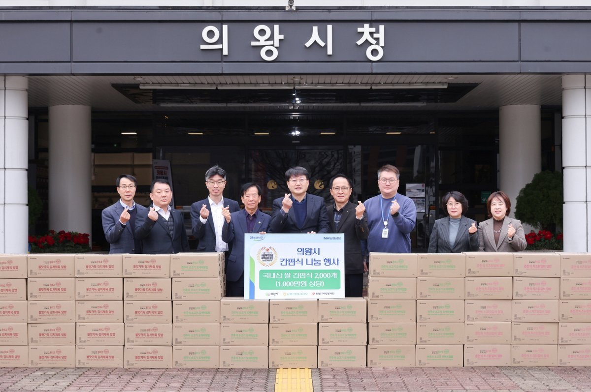 의왕시는 12월 24일 엔에이치농협 아이티사랑봉사단이 경로당 어르신을 위해 1000만원 상당의 간편식 도시락 2000개를 대한노인회의왕시지회에 기부했다고 밝혔다. (의왕시 제공)
