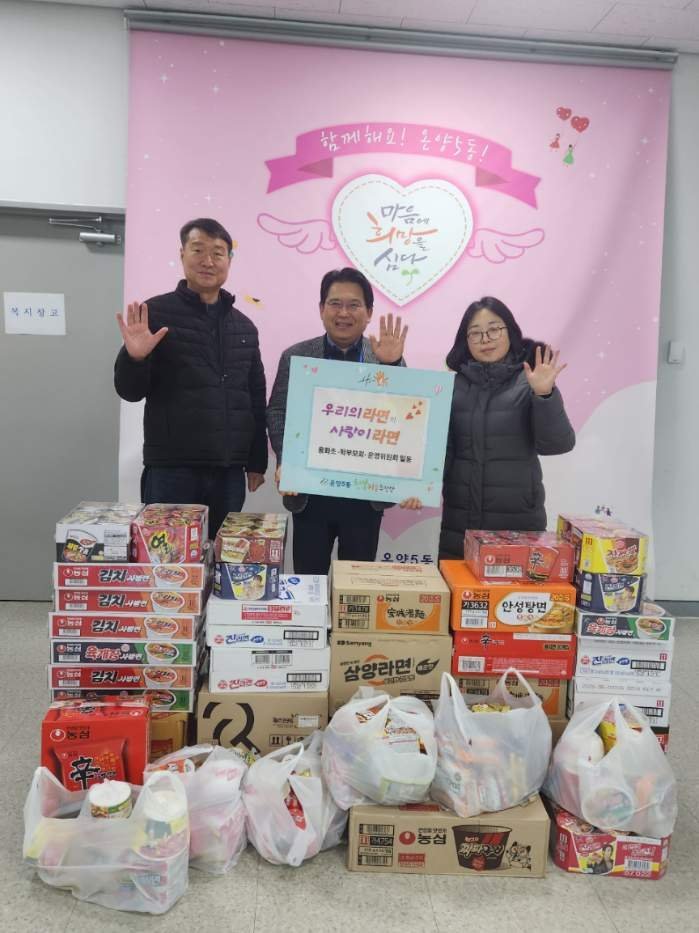 용화초·학부모회·운영위원회, ‘우리의 라면이 사랑이 라면’아산시 온양5동 행복키움에 전달 (아산시 제공)