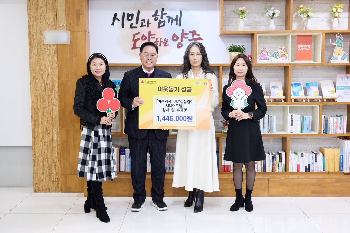이날 기탁식에는 권은경 강사와 수강생이 참석해 나눔의 뜻을 전했으며, 기탁된 성금은 경기 사회복지공동모금회를 통해 양주시 취약계층 지원에 사용될 예정이다.