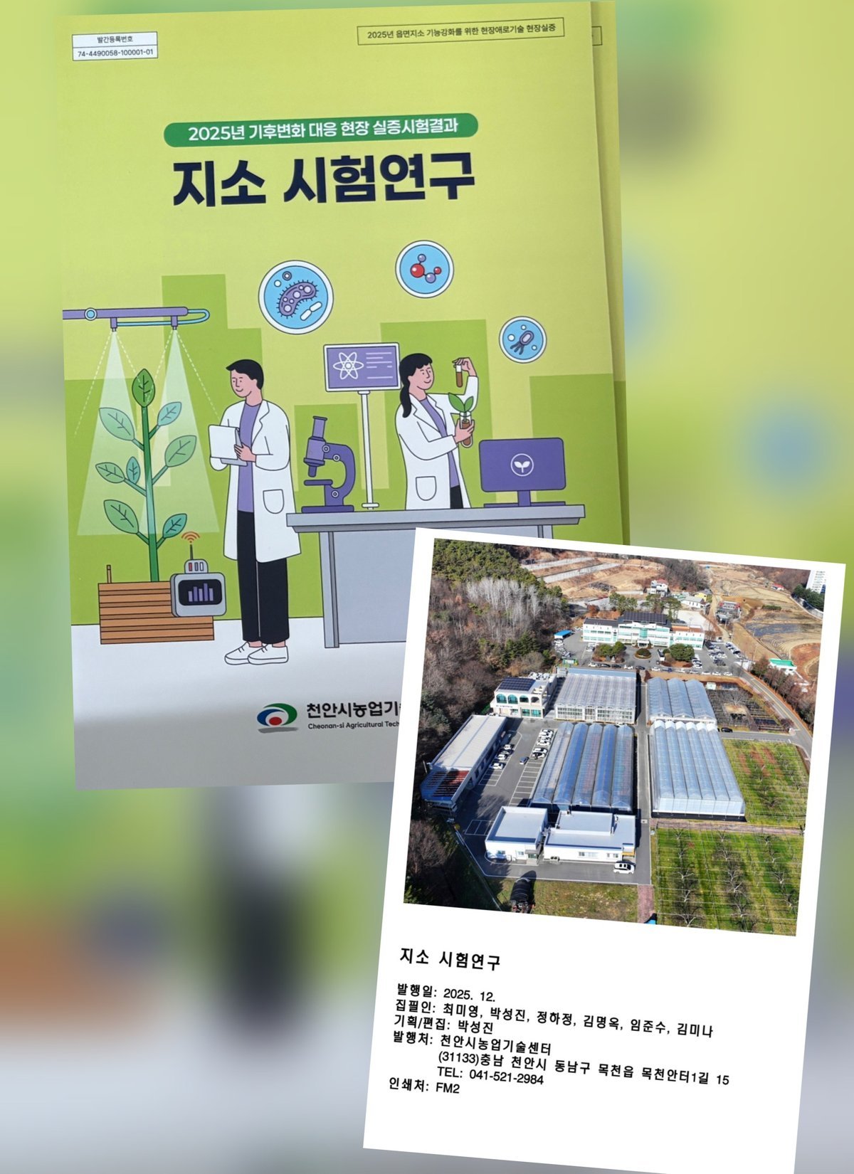 센터 관계자는 “기후변화로 인해 농가 현장의 어려움이 커지고 있는 만큼 과학영농기술을 담은 이번 시험연구 사례집이 농민들에게 든든한 길잡이가 되길 바란다”며 “앞으로도 농업현장에 필요한 기술을 지속적으로 실증하고 보급해 천안농업의 경쟁력을 높여 나갈 것”이라고 말했다.