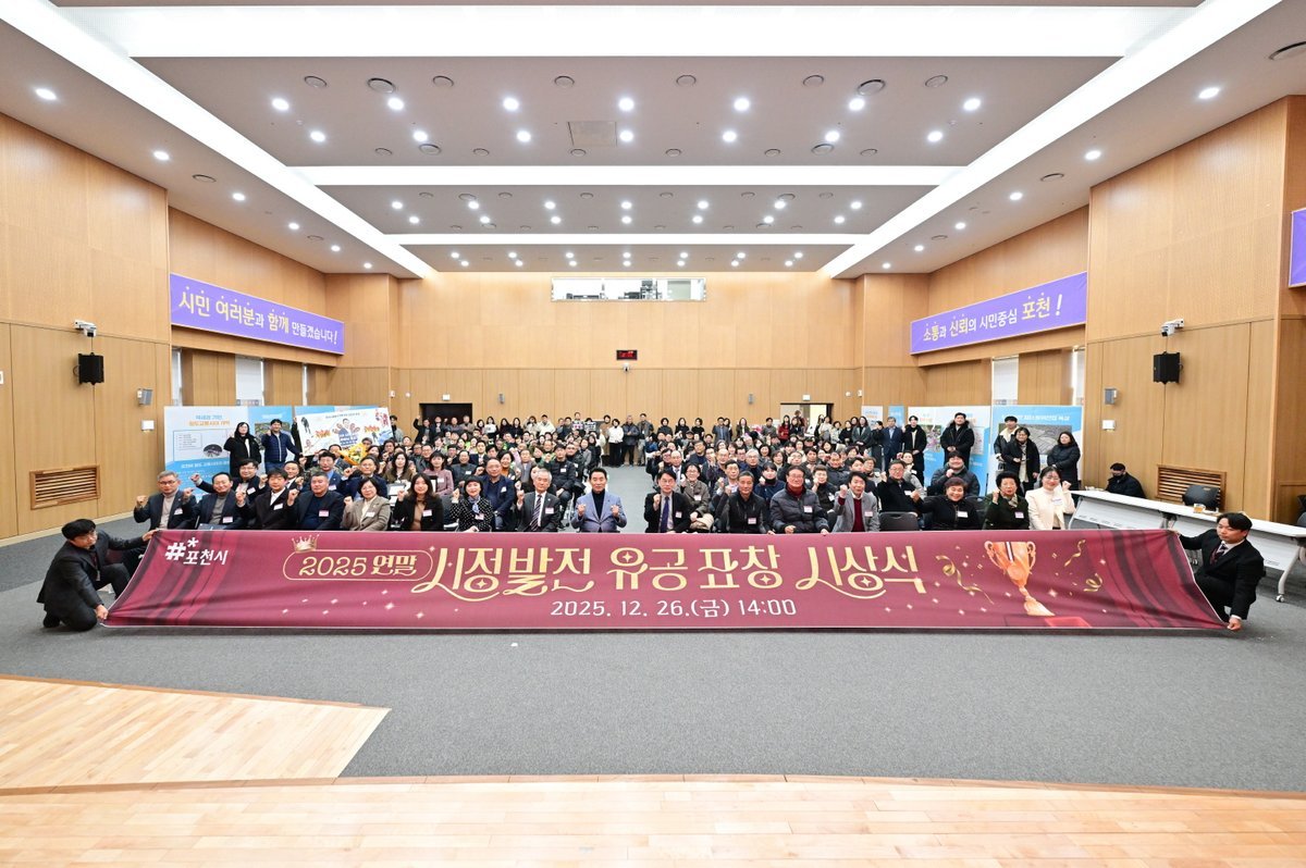 [금요저널] 포천시는 26일 시청 대회의실에서 2025년 연말을 맞아 한 해 동안 시정 발전을 위해 헌신 봉사한 유공자에게 감사의 마음을 전하는 시상식을 개최했다.