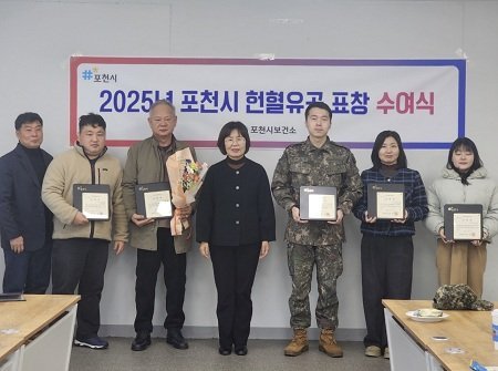 [금요저널] 포천시는 26일 보건소 2층 회의실에서 헌혈 문화 확산과 사랑 나눔 실천에 기여한 개인 및 단체를 대상으로 헌혈 유공 표창 수여식을 개최했다.