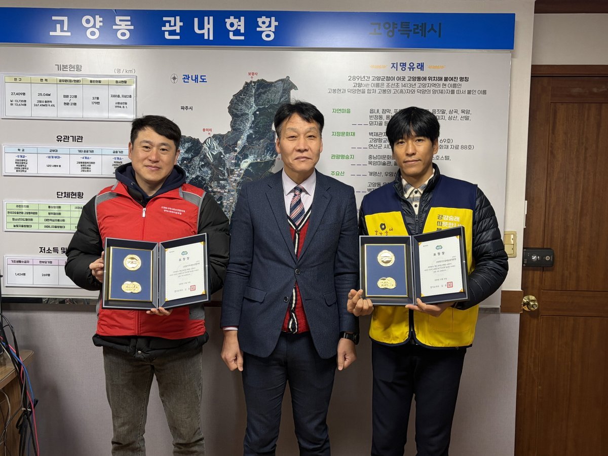 [금요저널] 고양특례시 덕양구 고양동은 10년간 꾸준히 반찬나눔 봉사를 실천해 온 지역사회보장협의체와 ㈜전한 강강술래 늘봄농원점 자원봉사자들에게 지난 26일, 경기도지사 표창을 전달했다고 밝혔다.