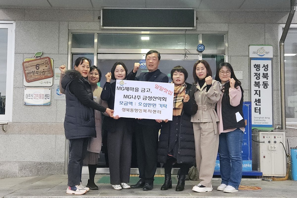 MG나주새마을금고와 MG나주금성산악회는 관내 취약계층의 겨울나기를 돕기 위해 지난 21일 일일 찻집을 운영해 얻은 수익금을 성북동 행정복지센터에 전달했다.