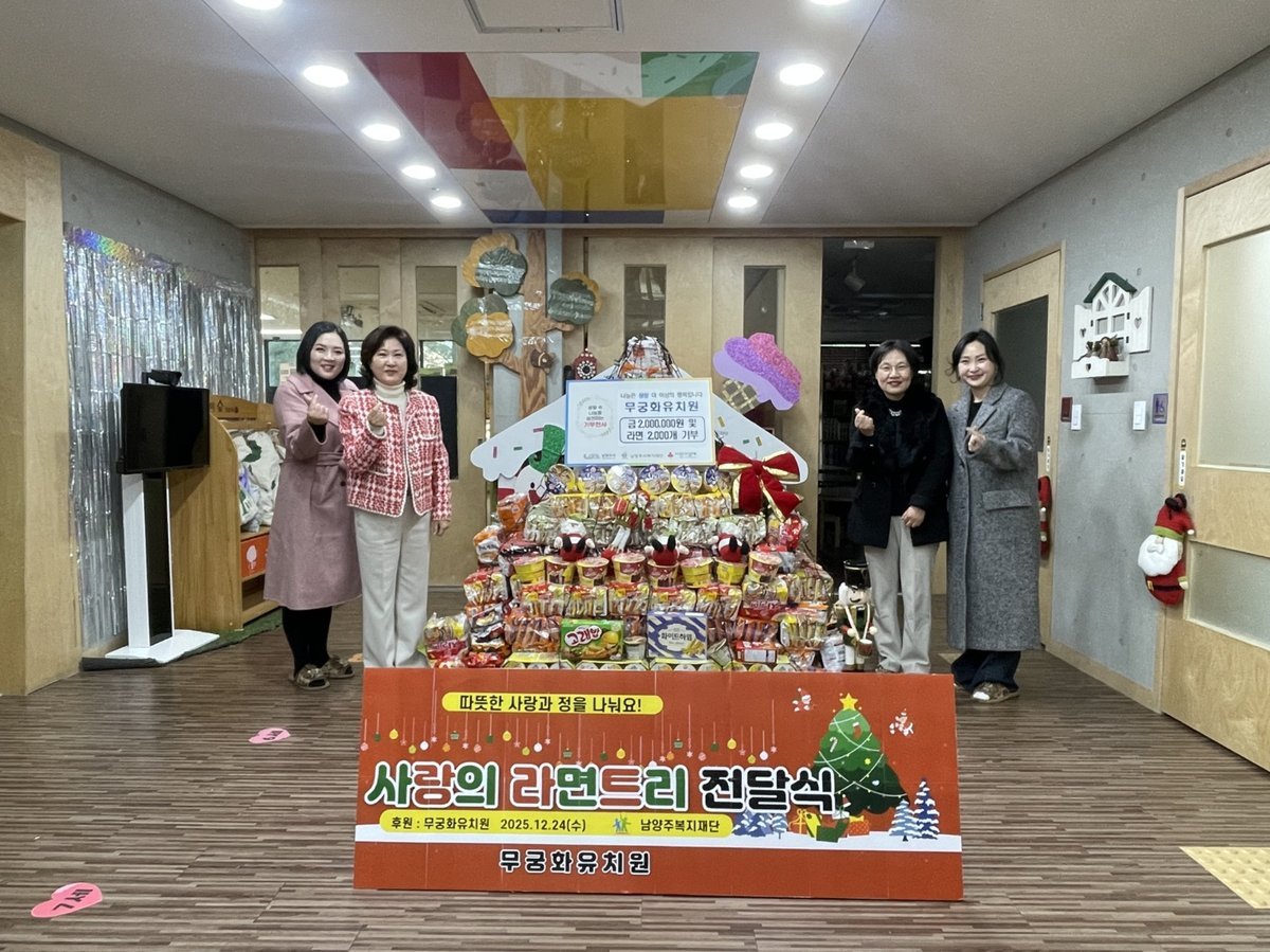 [금요저널] 남양주시는 지난 24일, 무궁화유치원이 연말을 맞아 지역 내 어려운 이웃을 돕기 위해 후원금 200만 원과 라면 2000개를 남양주시복지재단에 기탁했다고 밝혔다.