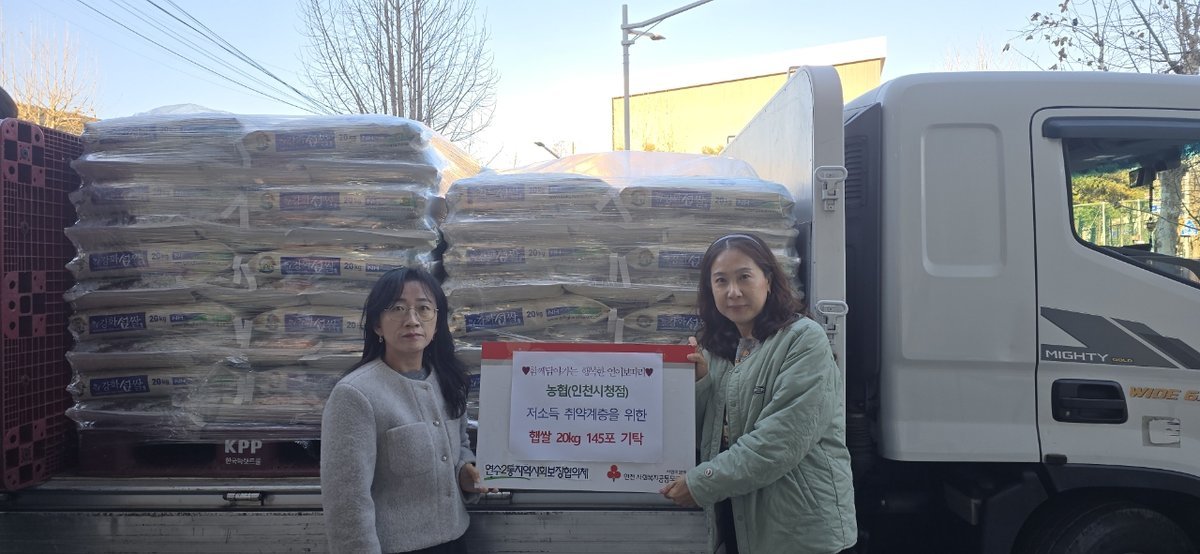 지난 18일 연수2동지역사회보장협의체는 농협으로부터 햅쌀 20kg, 145포를 전달받았으며, 전달된 물품은 저소득 홀몸 어르신, 중·장년가구, 차상위, 긴급지원 대상자 등 복지위기 가구 145세대에 배분될 예정이다.