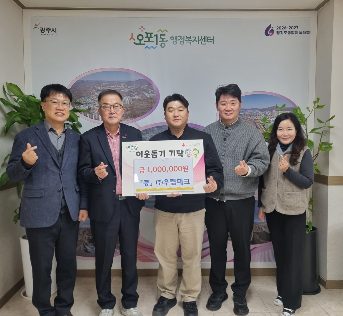우림테크, 광주시 오포1동에 이웃돕기 성금 100만 원 기탁 (광주시 제공)