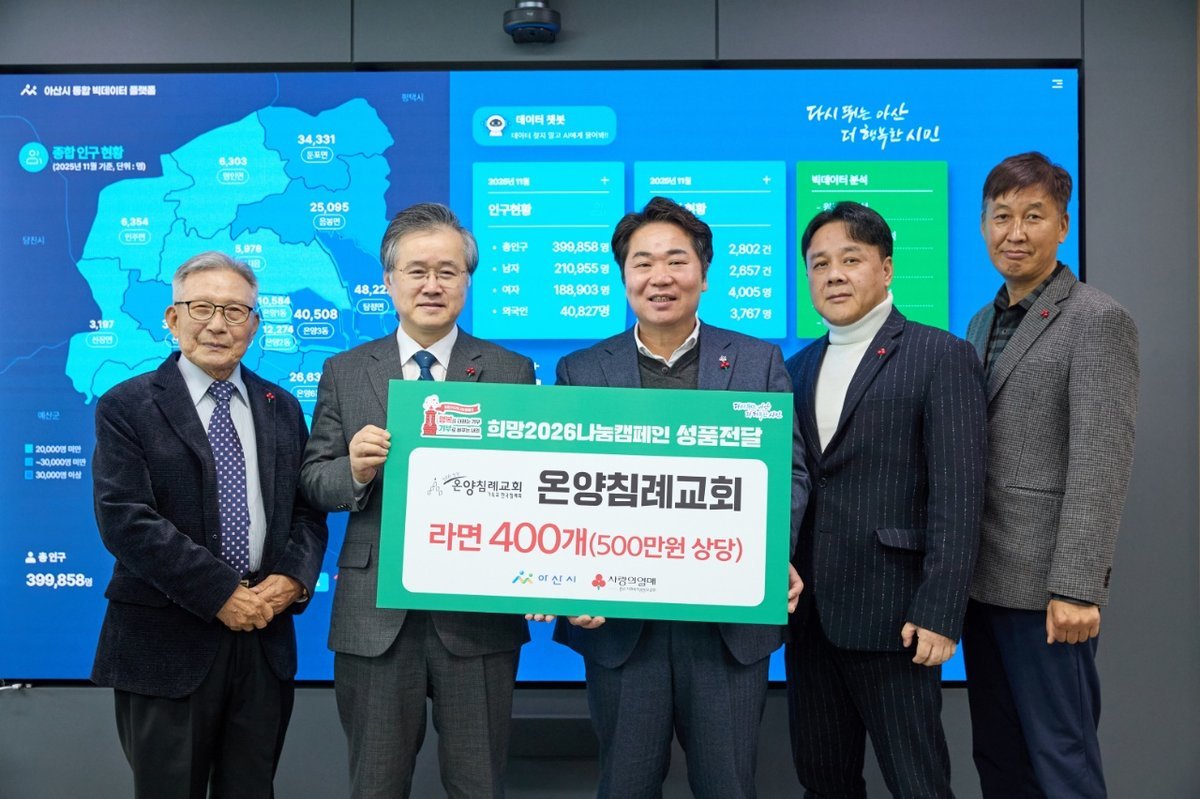 오세현 아산시장은 “매년 꾸준한 나눔으로 지역사회에 온기를 전해주시는 온양침례교회에 깊이 감사드린다”며 “아산시도 도움이 필요한 이웃 한 분 한 분이 소외되지 않도록 더욱 세심하게 살피고, 모두가 따뜻한 연말을 보낼 수 있도록 최선을 다하겠다”고 말했다.