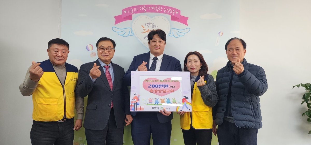 한편, 온양삼일교회는 매년 후원금 기탁을 비롯해 ‘어르신 안부 확인 우유배달 사업’등 다양한 나눔 활동을 지속적으로 펼치며 지역사회 복지 증진에 기여하고 있다.