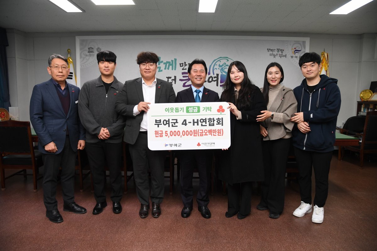 [금요저널] 부여군 농업의 미래를 이끌어가는 청년 농업인 학습단체인 부여군 4-H 연합회가 연말을 맞아 어려운 이웃을 위한 이웃돕기 성금 500만 원을 기탁했다고 2일 밝혔다.